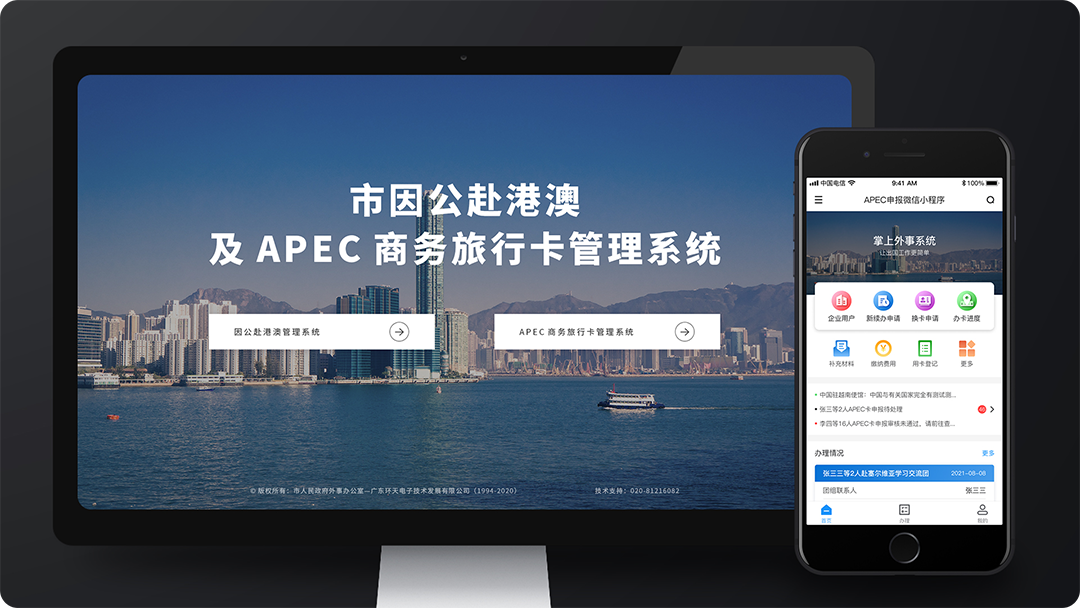 市因公赴港澳及APEC商务旅行卡管理系统,实现了因公赴港澳管理以及APEC商务旅行卡两大系统的管理功能, 市因公赴港澳系统从团组资料录入、审批受理、团组审批、批件制作、办证受理、通行证制作、批注制作实现全过程的管理, 以在线形式办理因公赴港澳业务;出访结束后进行催缴和登记,更加智能和便捷。 APEC商务旅行卡系统,从受理资料、申办、初审、缴费、外办复核到最终制卡,可完成APEC卡的申办、更换、提前制卡以及注销卡,形成闭环管理。